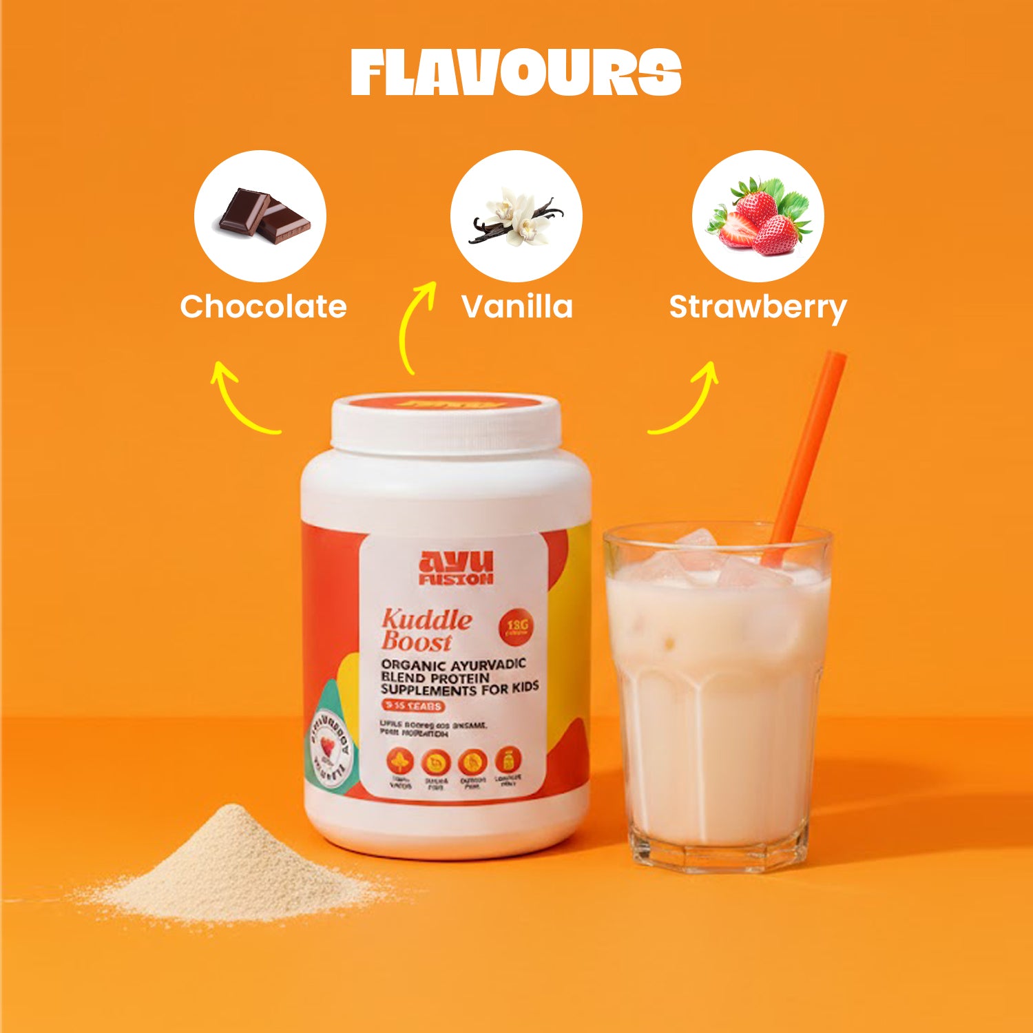 Absolutely. Kuddle Boost by AyuFusion is 100% safe — made from pure, Ayurvedic, and plant-based ingredients with zero chemicals, preservatives, or artificial flavors. Every batch is lab-tested for purity, ensuring gentle nutrition that supports your child’s growth without any side effects. It’s the kind of safety only nature and science together can promise — trusted by moms, loved by kids.